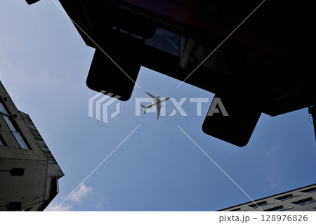 建築物之間可見的飛機