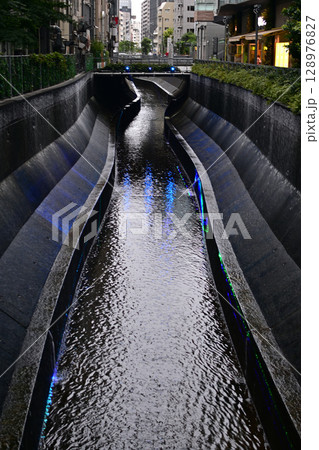霓虹燈倒映的澀谷河