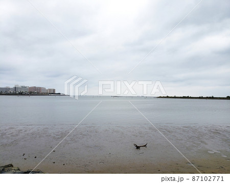 東京灣海邊風景,您可以看到潮汐的沙灘和對岸的建築物1