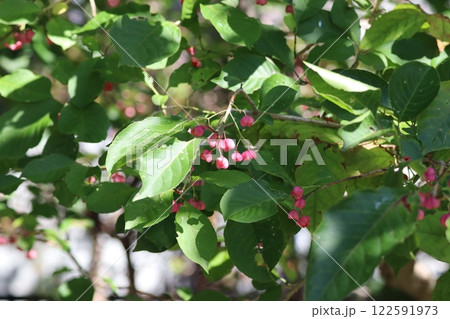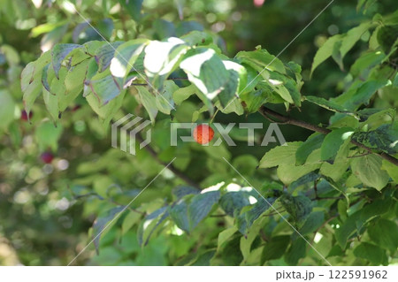 帶紅色漿果的山茱萸樹