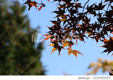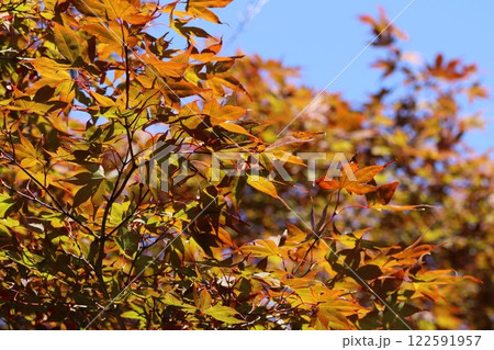 發光在藍天的秋葉