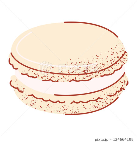 French macaron. Sweet snack dessert. Vector illustration, flat hand drawn style with texture. Baked food for sticker, bakery, cafe shop, restaurant menu. Isolated background