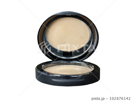 Cosmetic face powder or makeup puff isolated on white background, with clipping path