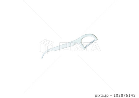 Plastic white dental toothpick with dental floss isolated on white background with clipping path