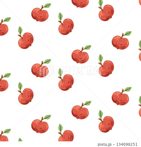 Hand drawn vector apple seamless pattern watercolor style