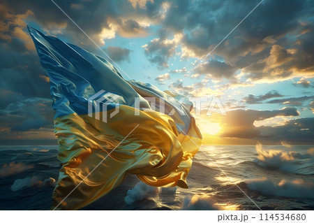 Ukrainian flag on the background of the sky.