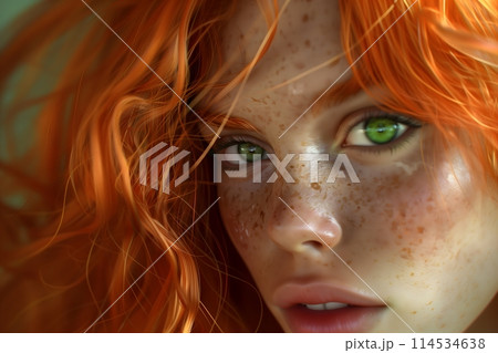 Red-haired girl with green eyes.