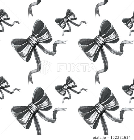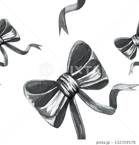 Bows. Monochrome. Seamless pattern. Hand-drawn watercolor illustration isolated on a transparent background. For textiles, fabrics, and wallpaper
