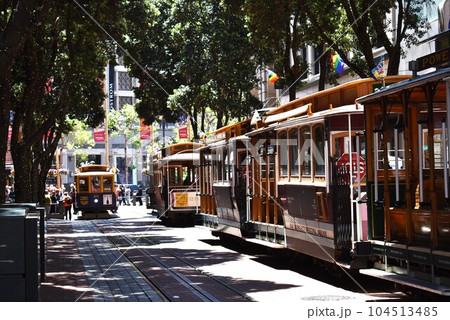 在美國加利福尼亞州舊金山乘坐纜車,欣賞陡峭的斜坡