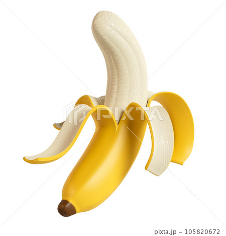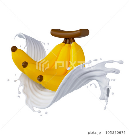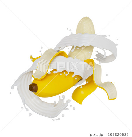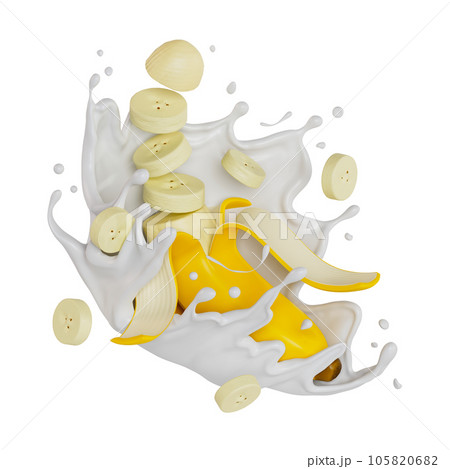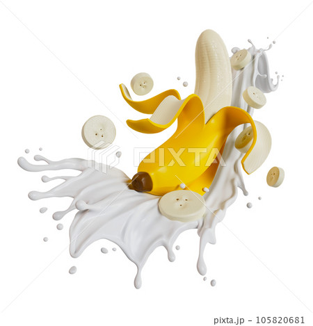 peeled bananas splashes milk isolated on background. 3D render illustration