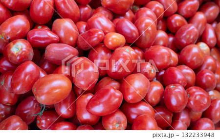 Freshly picked red ripe tomatoes. Close-up. Tomato background or texture. Lots of red tomatoes. Tomato harvesting.