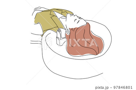 一個女人被洗頭的線條畫插圖