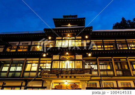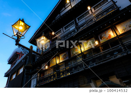 [東京]映照在隅田川上的永泰橋和塔式公寓的燈光