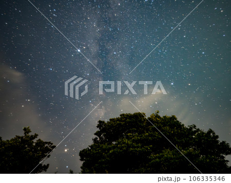 樹間的流星和星空