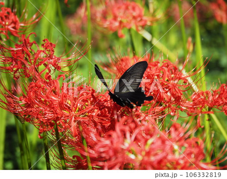 黑燕尾從紅孤挺花中吸取花蜜