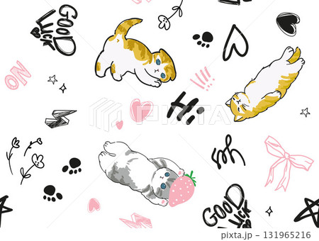 Seamless pattern with graphics Elements sketch pug, hearts, text hearts for textiles and girly surface design on vector
