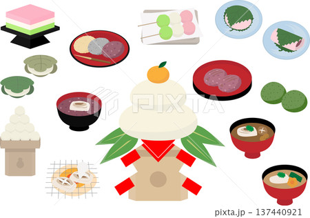各種麻糬和團子的插圖