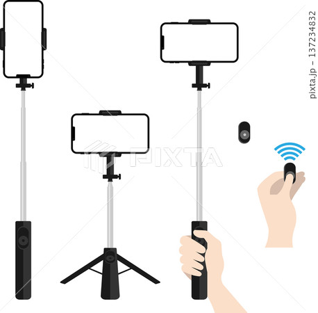 一套可以將智慧型手機連接到自拍棒上進行拍照和錄影的設備