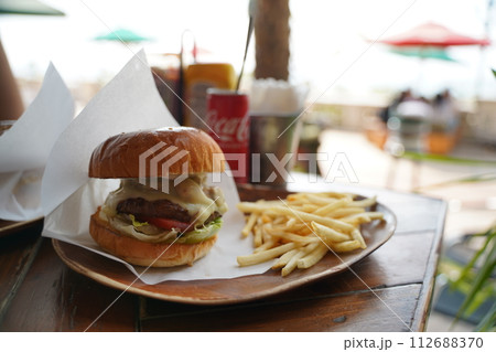 時尚的咖啡館漢堡