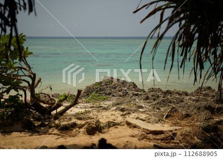 鮮綠色海和白色沙子海灘