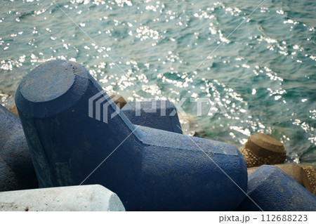 四腳架放置在消波塊上