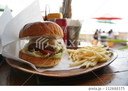 時尚的咖啡館漢堡