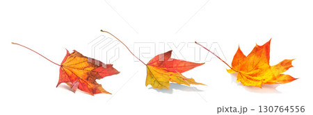 Pile of autumn colored leaves isolated on white background. Colorful foliage of maple leaves in the fall season. 3D illustration