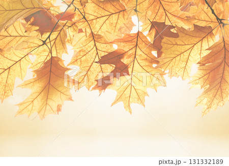 abstract autumnal fall scene in cream color shades. Autumn texture background with shadow of maple tree leaves on a wall.