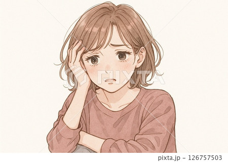 一位因睡眠不足而痛苦的女性的插圖(橫向 3:2,白色背景)