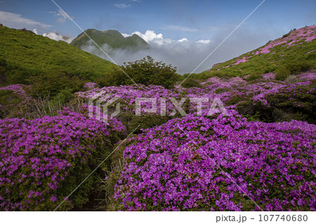 霜凍的樹木和沐浴在朝霞中的美麗山脈