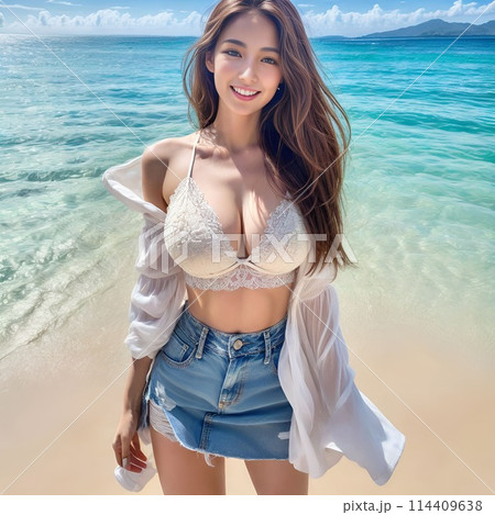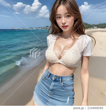 大胸女孩的海灘凹印