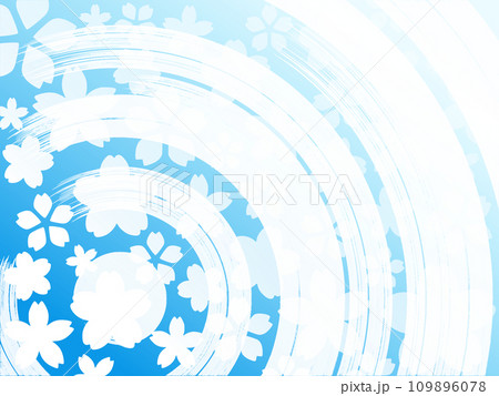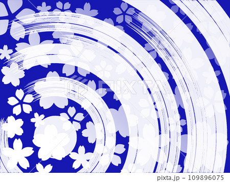 用刷子和白色櫻花背景繪製的黑色圓形波紋日式花卉背景圖