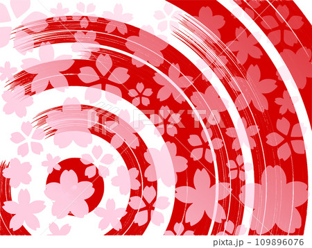 用畫筆繪製的紅色波紋和櫻花背景 日式花卉背景圖