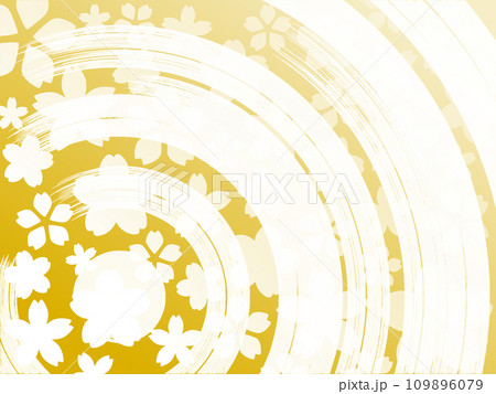 用刷子繪製的波紋和櫻花背景 黃色日式背景圖