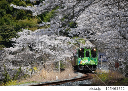 從青龍新岩國站搭乘櫻花盛開的向日葵列車