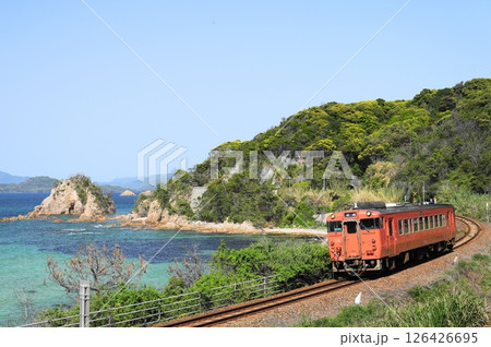 從車窗看到的全海景Urara漂亮的Kiha日本海