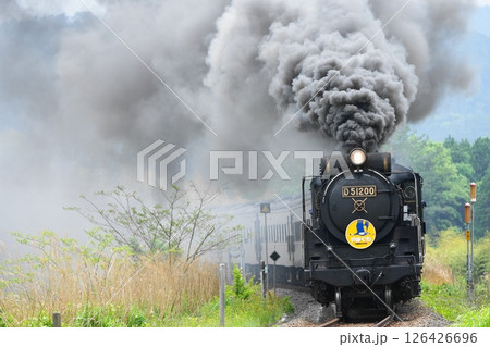蒸氣機車“SL山口”在山口線上壯觀地行駛