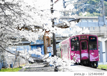 錦川清流線櫻花盛開的街道和「木乃伊日」列車