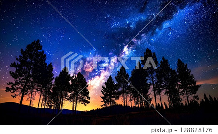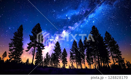 森林中浮現出奇幻而神秘的星空