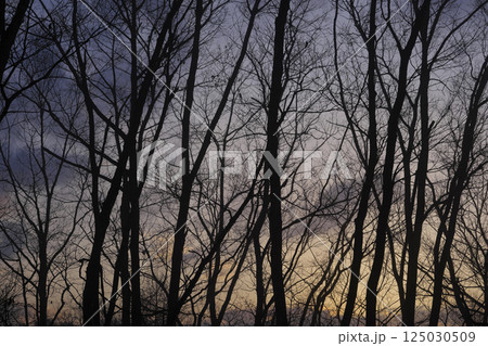 漸變日落和樹木輪廓