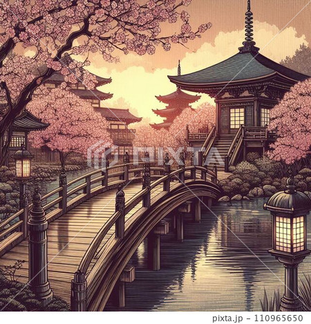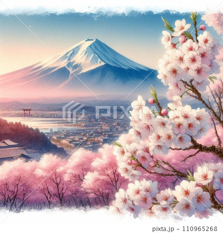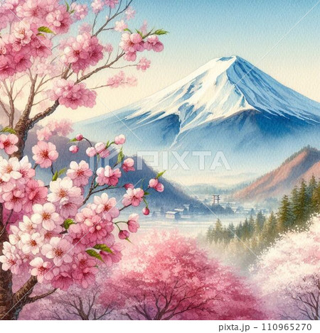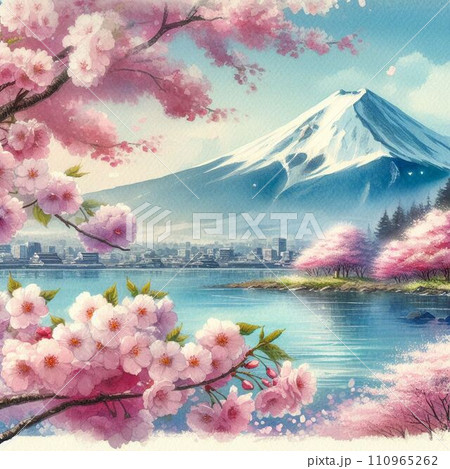 春季櫻花盛開時從大石公園看到的山脈“AI創造”