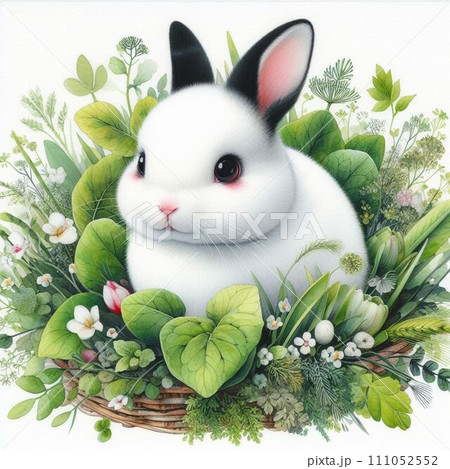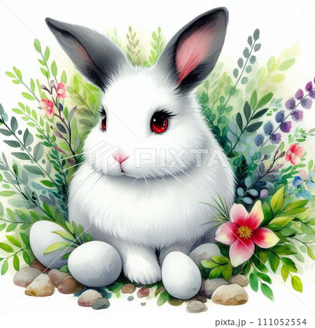 「AI 創建」的復活節彩蛋和兔子的可愛插圖