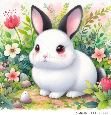 春天的花朵、兔子和動物的可愛無縫圖案插圖“由 AI 創建”