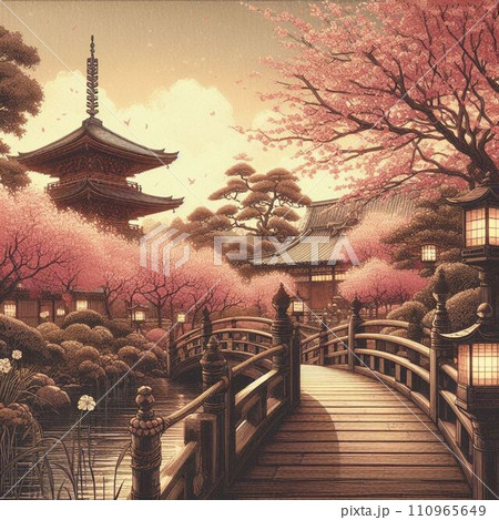 從櫻花盛開的大石公園看到的春花和紅白倒梅的景色“AI創造”