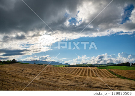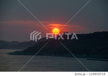 從浦河町的夜光之丘眺望日高地區的山脈日落