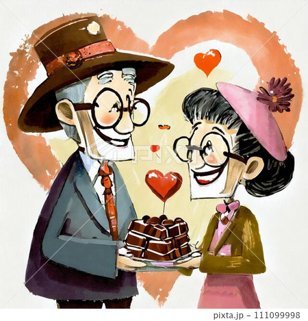 情人節當天,一位女士送出巧克力,一位男士收到巧克力