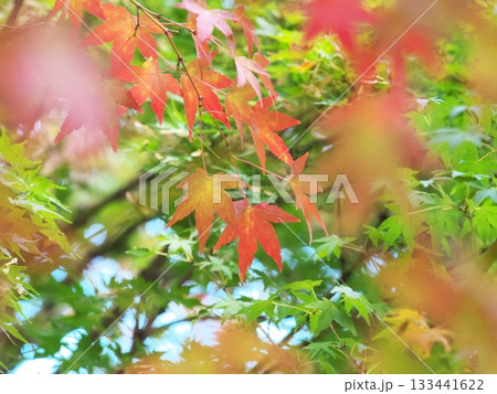 發光在藍天的秋葉