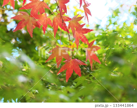 逆光中閃耀的楓葉