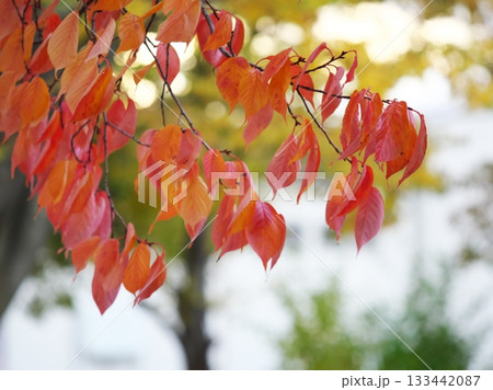 紅葉黃葉的山茱萸樹