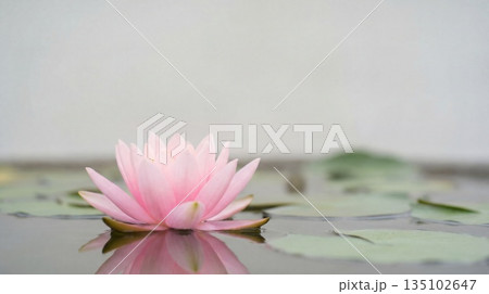 Pink water lily blooming on calm pond